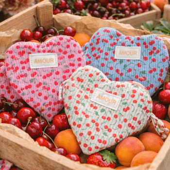 Pochette en coeur « amour » cerises – plusieurs coloris