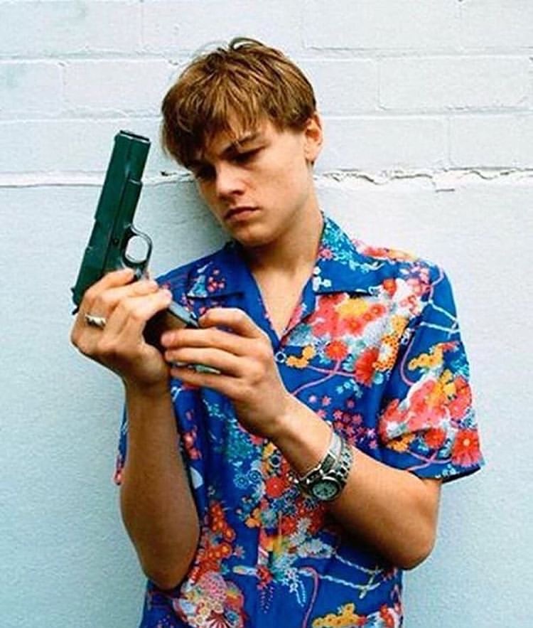 Impossible de ne pas penser à Leonardo DiCaprio dans Romeo + Juliet de Baz Luhrmann.